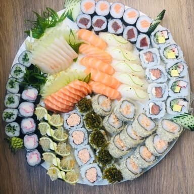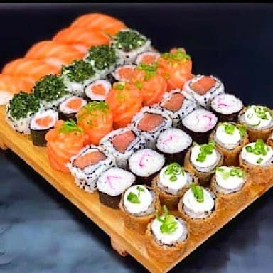 5 Niguiri salmão, 5 Niguiri tilápia, 4 Niguiri skin. 4 Uramaki salmão, 4 Uramaki Filadélfia, 4 Uramaki Califórnia, 4 Uramaki skin. 5 Kanimaki, 5 kapamaki. 10 Shakemaki 10 hot holl. Obs. Não fazemos alterações