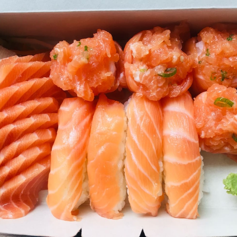 Acompanha 8 sashimis salmão 4 Djou salmão 4 Nig. Salmão