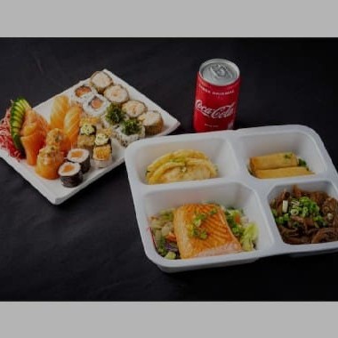 6.Sashimi salmão 4.Djou salmão 4.Niguiri salmão 8.Shakemaki 2. Temakis (130g-cada), á sua escolha. Bom apetite!!!