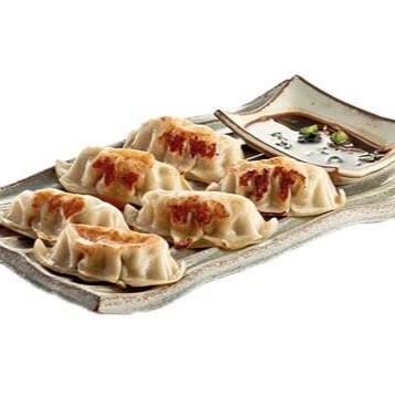 Delicioso Guioza de carne, servido ao molho e cebolinha.