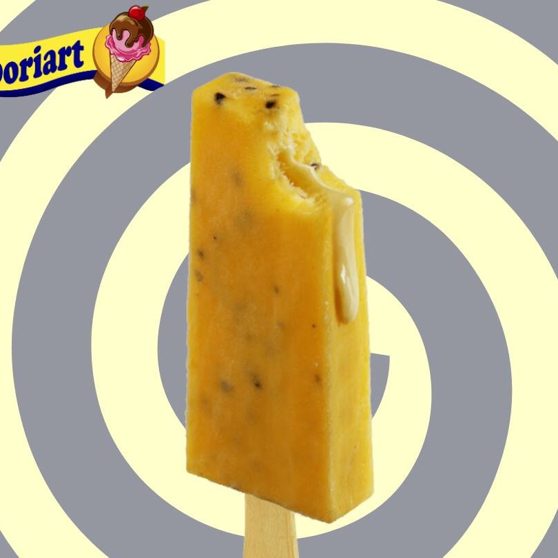 Paleta mexicana sabor maracujá, com recheio de leite condessado