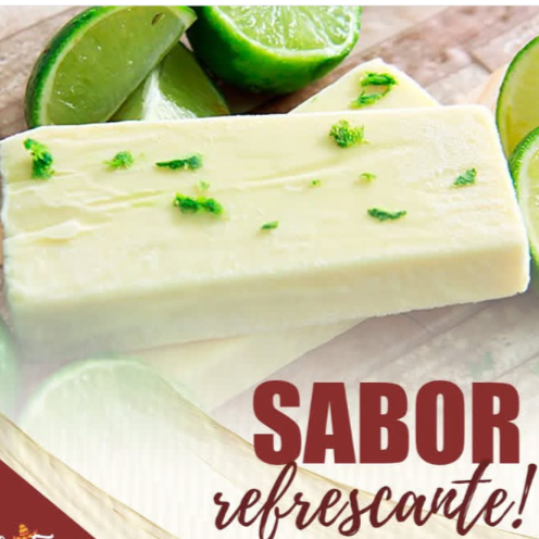 Picolé Tradicional ao Leite Sabor torta de limão 🍋🟩 55g Ingredientes: Leite integral, açúcar, leite em pó integral, gordura de palma 370B, glucose e estabilizante: carboximetilcelulose sódica INS (466) e goma guar INS (412). Corante: Amarelo Crepúsculo INS (110). ALÉRGICOS: CONTÉM LEITE E DERIVADOS. CONTÉM LACTOSE. NÃO CONTÉM GLÚTEN. Informações Nutricionais Quantidade por Porção: Porção 55g: (1unidade) 100g 55g %VD (*) Valor Energético (kcal) 283 156 8 Carboidratos(g) 29 16 5 Açúcares totais(g) 25 14 0 Açúcares adicionados(g) 20 11 22 Proteínas(g) 2 1,2 2 Gorduras Totais(g) 2 1 2 Gorduras Saturadas(g) 2 1 5 Gorduras Trans(g) 0 0 0 Fibra Alimentar(g) 0 0 0 Sódio(mg) 65 36 2