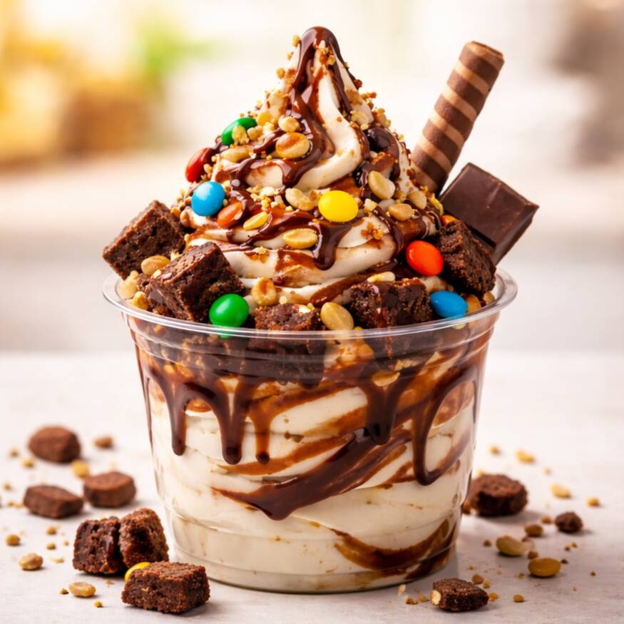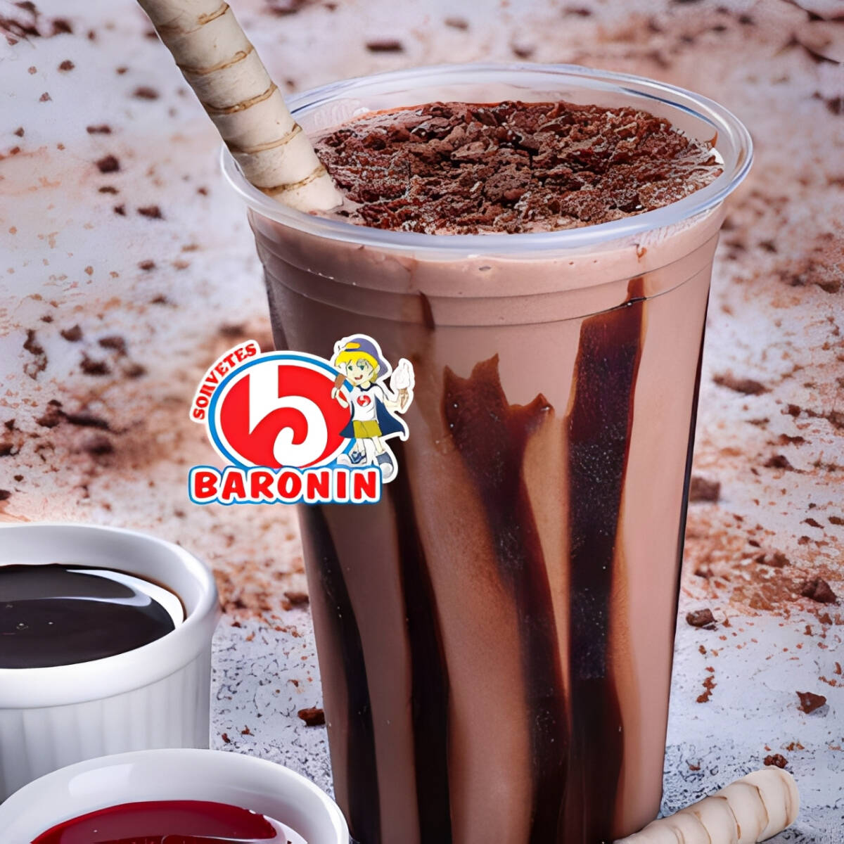Cremoso sorvete de chocolates ervido em camadas com calda de chocolate rica e intensa. Finalizado com cobertura generosa de chocolate, criando uma sobremesa gelada, doce e irresistível, perfeita para quem ama chocolate.