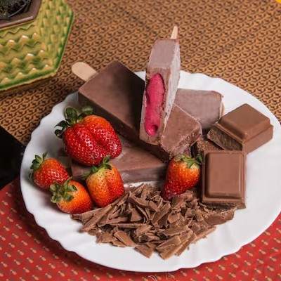 cremoso e marcante com o sabor do morango com chocolate