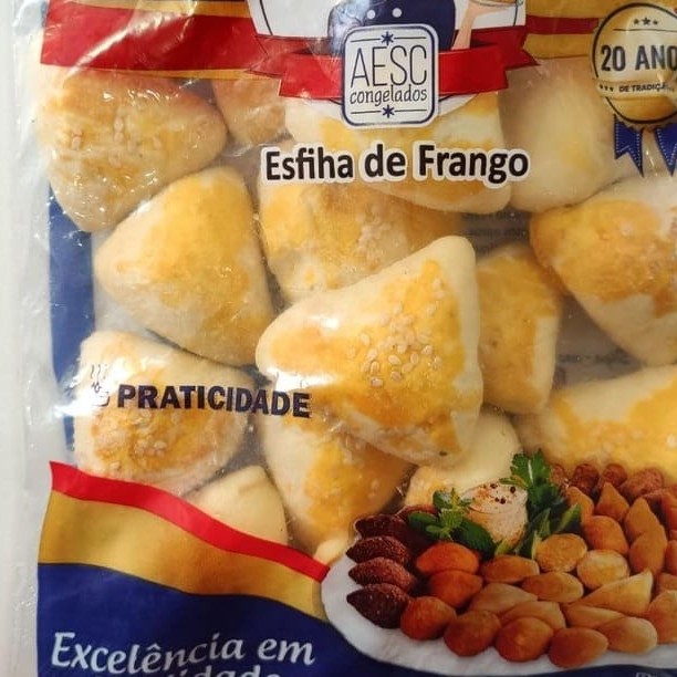 Deliciosa mini esfiha de frango. Produto já assado, basta aquecer. Contém aprox. 21 unidades.