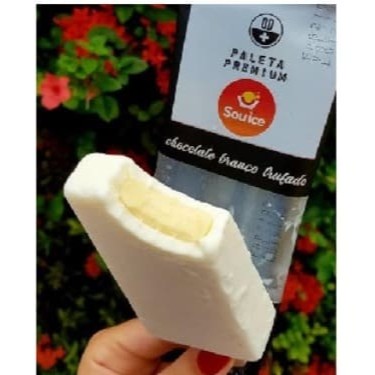 Paleta de chocolate branco com recheio de chocolate branco trufado.