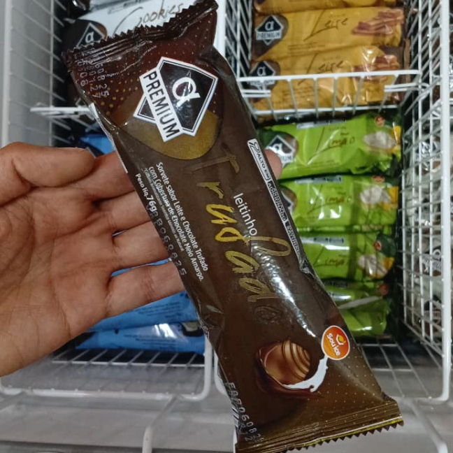 Paleta de leite Ninho com recheio de trufa de chocolate.