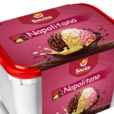 Aprecie o sorvete Napolitano, uma deliciosa combinação de chocolate, baunilha e morango, ideal para agradar todos os paladares em um só pote.