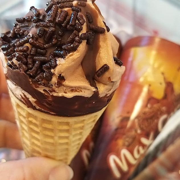 Prefeita combinação de sorvete sabor doce de leite com cobertura de chocolate meio amargo. Equilíbrio na medida certa!