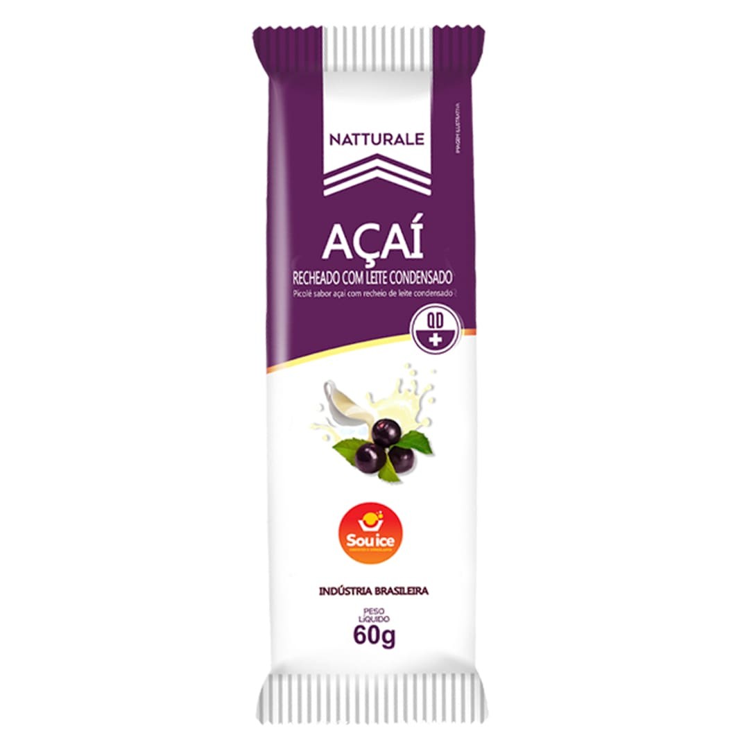 Picole Acai c/ Leite Trufado da linha açaí. Este sorvete promete uma experiência sensorial única. Desfrute de um sabor autêntico e natural do açaí, realçado pela presença estimulante do Guaraná. O grande diferencial deste prato é o seu recheio generoso de leite trufado, que adiciona uma textura cremosa e um sabor irresistivelmente. Este é um prato que celebra a rica tradição brasileira de sorvetes de açaí que é uma verdadeira delícia.