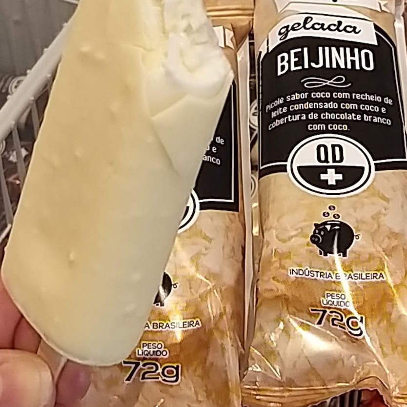Delicioso picolé sabor coco queimado, o famoso quebra-queixo geladinho e no palito.