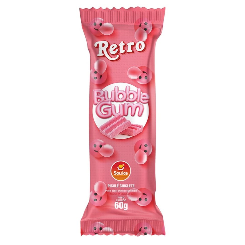 Delicioso picolé sabor artificial de chiclete, sabor de infância