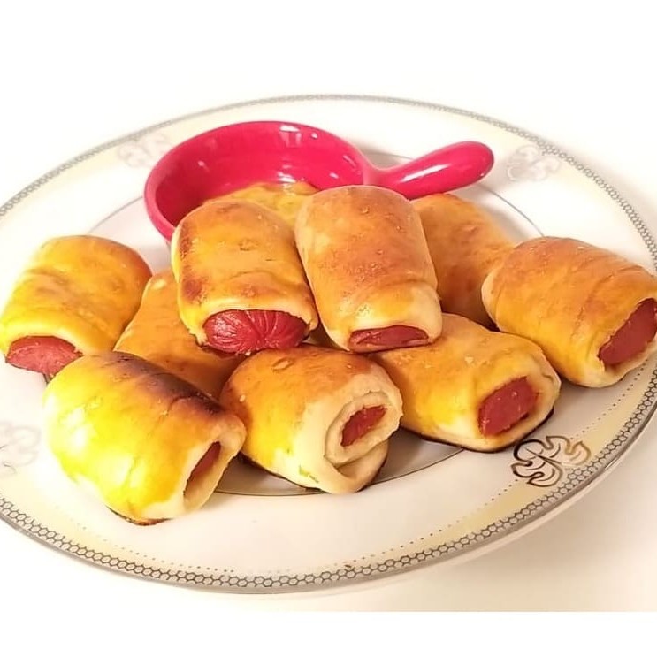 Delicioso enroladinho de salsicha assada. Basta aquecer e servir. Massa fina, leve e crocante. Aprox. 23 unid.