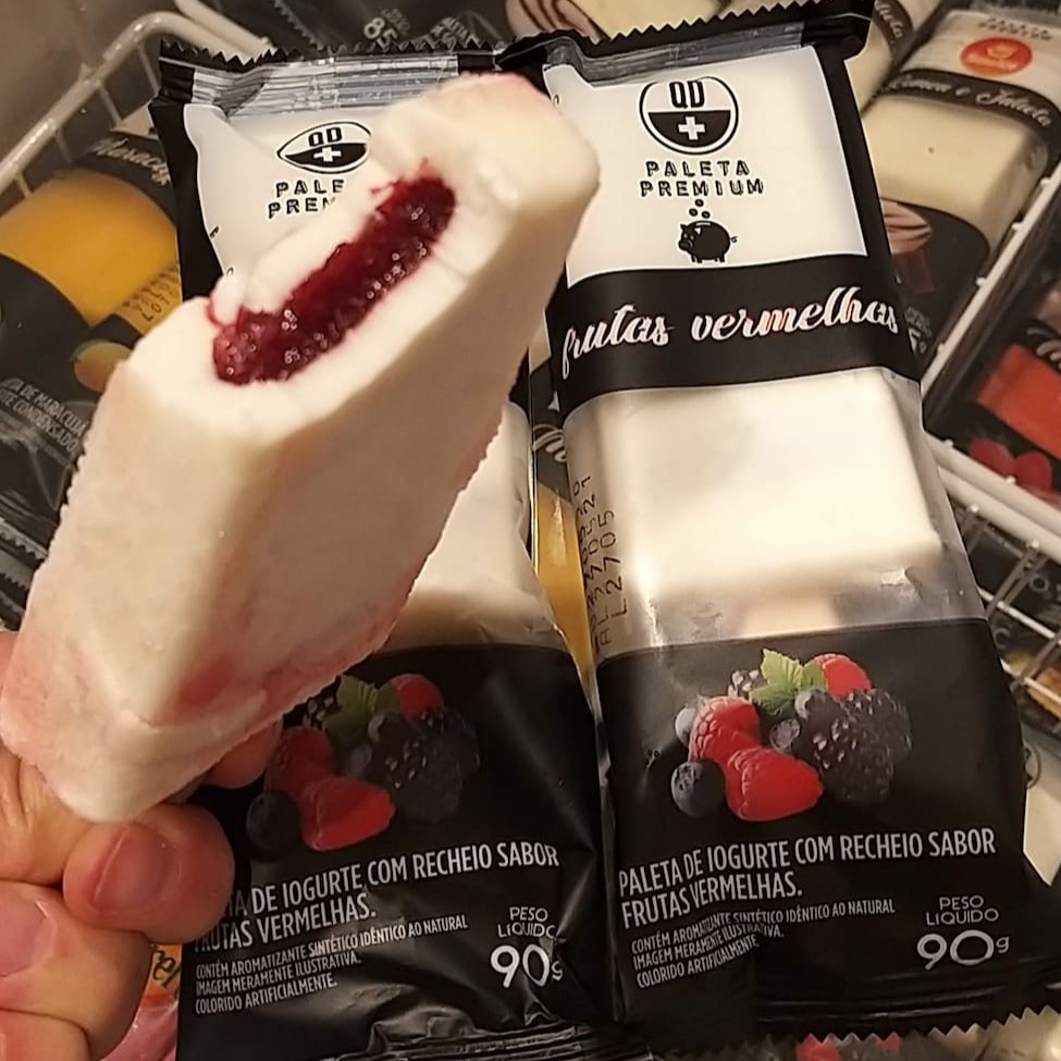 Deliciosa paleta sabor iogurte recheada com calda de frutas vermelhas 85grs