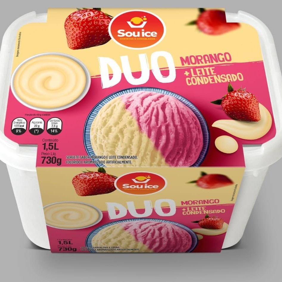 Cremosíssimo sorvete de morango e leite condensado em único pote (meio a meio). Delícia!