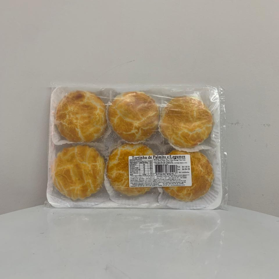 Tortinhas sabor palmito e legumes, basta aquecer e servir. Massa leve e crocante.