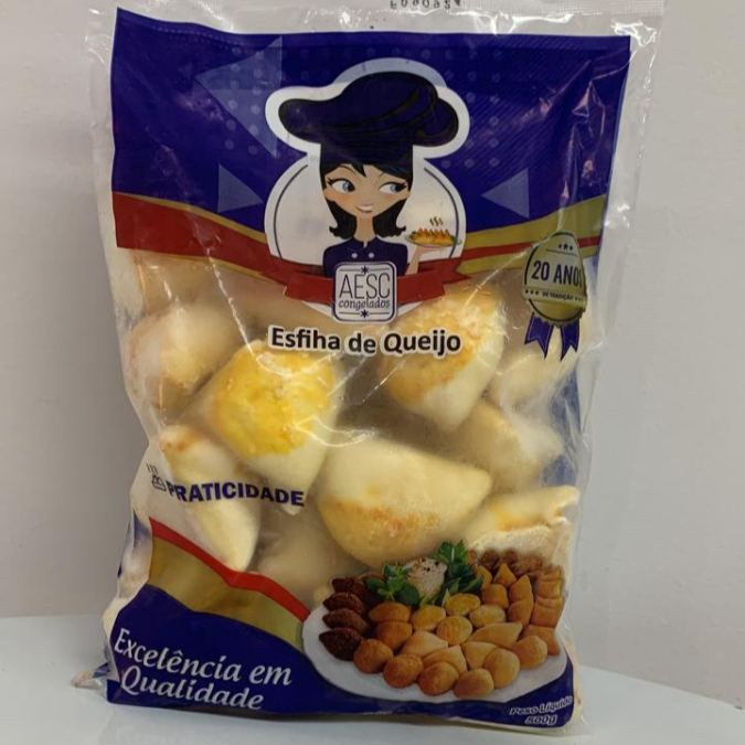 Levíssima esfiha de queijo. Já assada! Basta aquecer no forno ou em fritadeira elétrica e servir. Aprox. 23 unidades