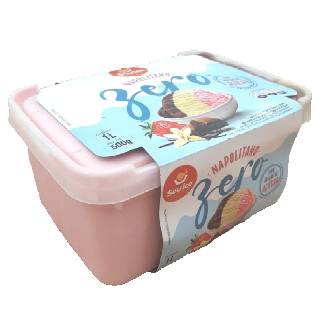 Sorvete Sabor Artificial de Creme, Morango e Chocolate Zero Adição de Açúcar. 500g