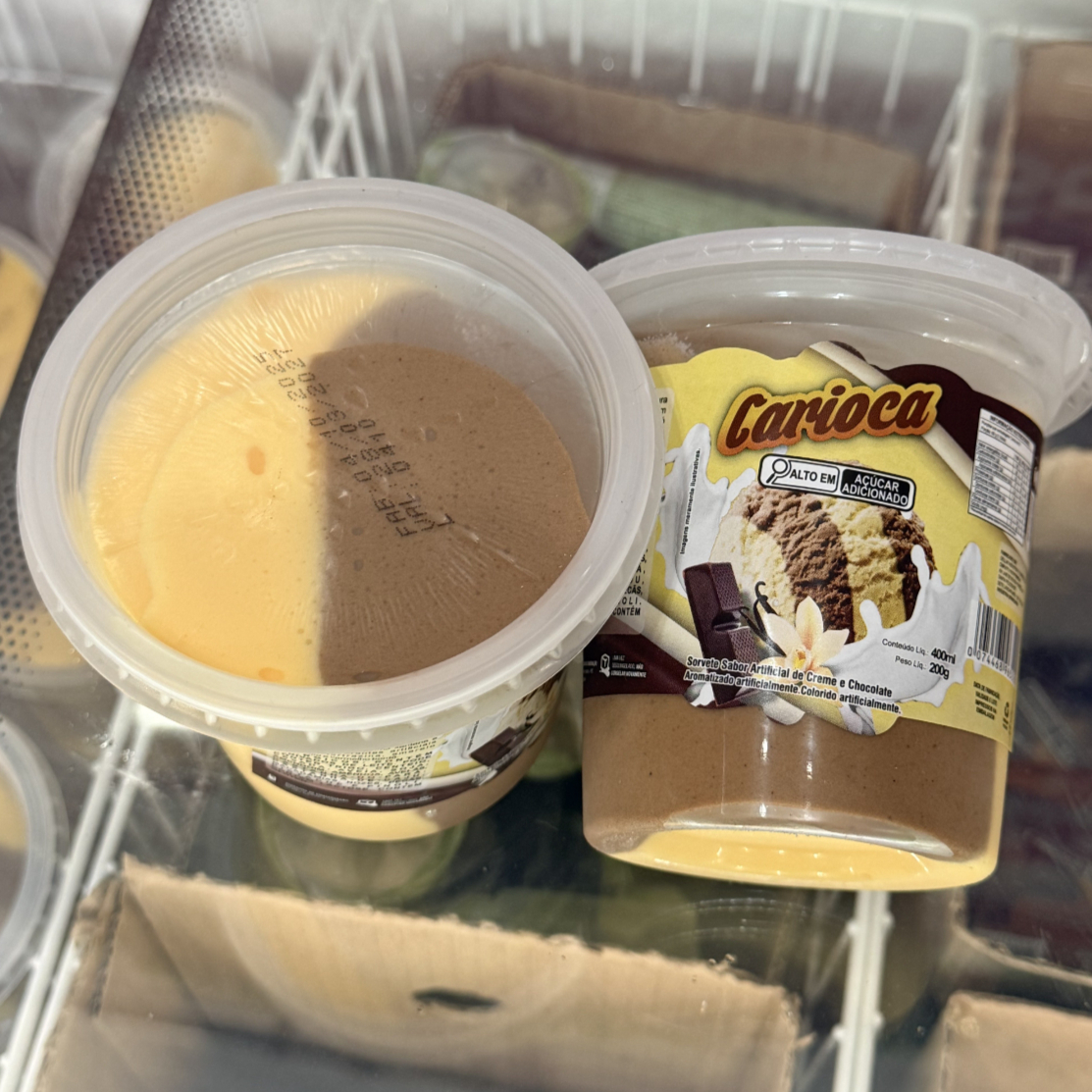 sorvete sabor chocolate meio amargo, chocolate branco e chocolate ao leite. Para amantes de um bom chocolate