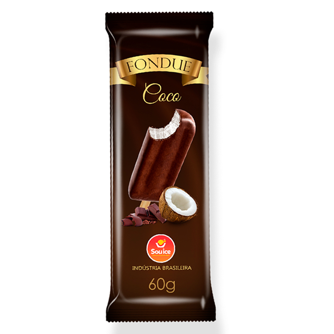 picole sabor coco coberto por uma deliciosa casquinha de chocolate ao leite crocante