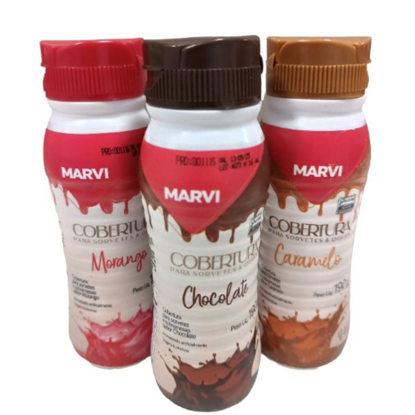 delicioso sorvete de morango coberto com choclate ao leite e xerem de caju