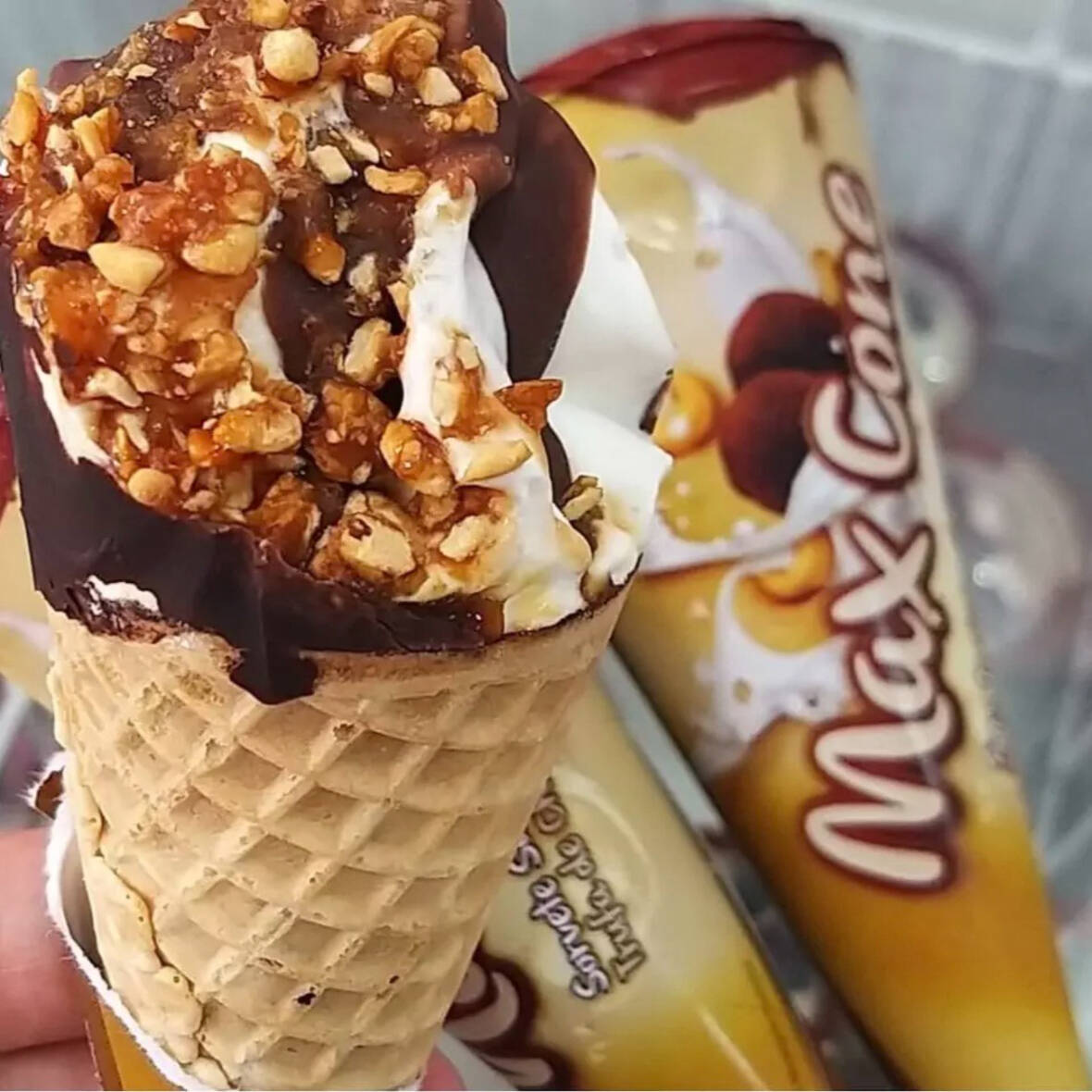sorvete sabor paçoquinha aquela iguaria da infancia no pote. com pedaços de amendoim