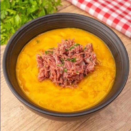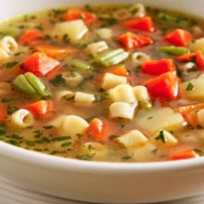Sopa de origem italiana.com base de legumes Batata cenoura vagem mandioquinha abóbora .pedacos de carnes ,caldo bem suculento e Grosso.