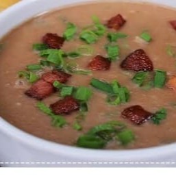 Caldo de feijão.com bacon e calabresa .com cenoura e batata bem.picadinha e um.tempero caseiro e suculento.