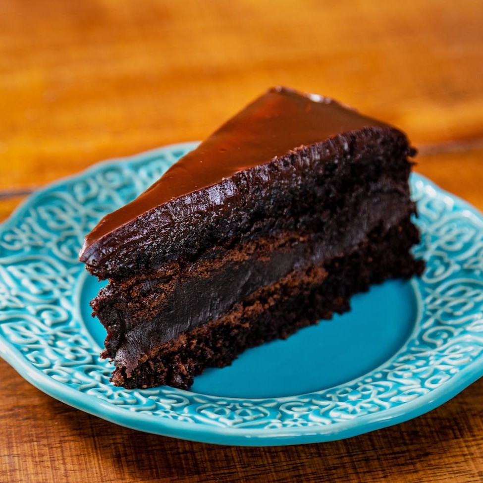 Bolo de chocolate com várias camadas de chocolate e mais chocolate na cobertura