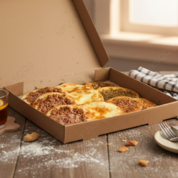 Combo inclui quatro esfihas, que são preparadas diariamente com massa fresca e recheios deliciosos. São assadas no forno para garantir uma textura e um sabor autêntico.