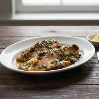 Filé de peixe grelhado na brasa com pesto de pistache ou molho tarator, nozes e salsinha