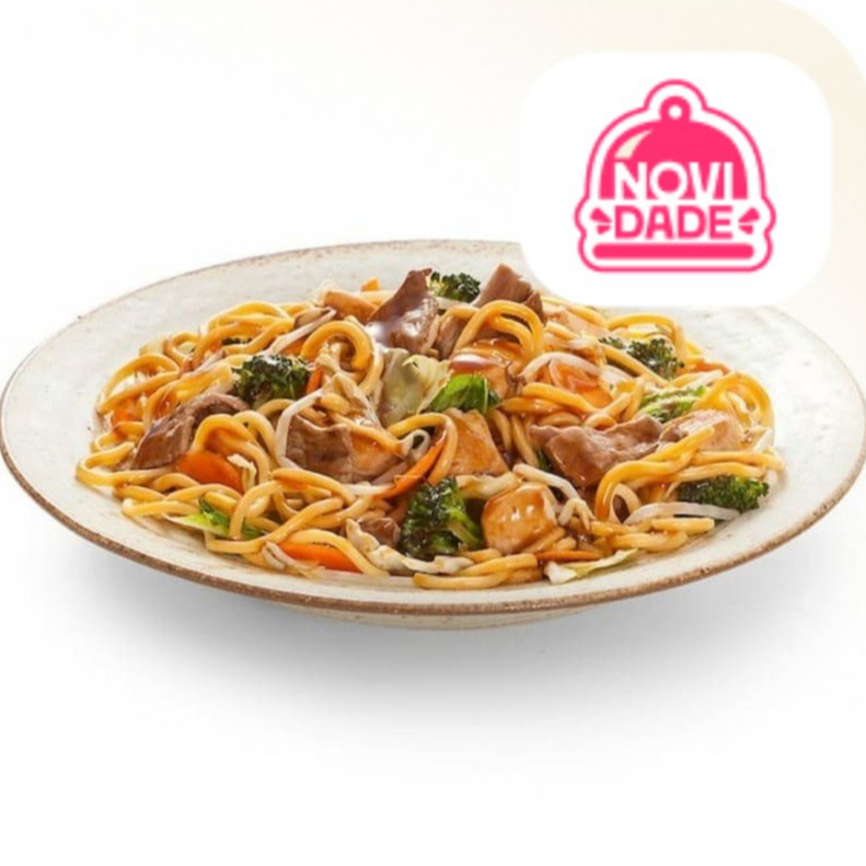 Nosso delicioso yakissoba com carne, frango e legumes ao molho de soja, para comer sozinho ou compartilhar com a galera. Aproveite!