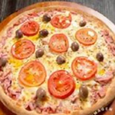 Molho de tomate, presunto , tomate , mussarela , orégano e azeitona
