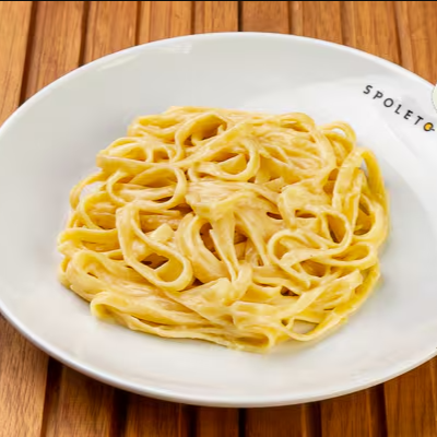 Fettuccine importado da Itália, ao molho de queijos feito pelo Spoleto com queijos frescos e lascas de gorgonzola. Escolha entre Carne ou Filé de Frango, à milanesa ou à Parmegiana.