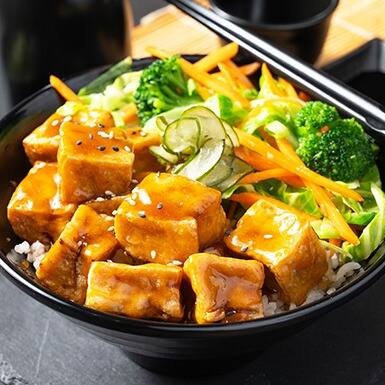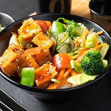 Este Domburi de tofu frito ao molho agridoce é uma verdadeira explosão de sabores. Repleto de tofu crocante e dourado, banhado em um molho agridoce caseiro irresistível que equilibra perfeitamente a doçura com a acidez. É acompanhado por cebola e pimentão, que trazem um toque fresco e colorido ao prato. Adicionamos também uma porção de Gohan, o nosso arroz japonês tradicional, e uma seleção de legumes frescos, garantindo uma refeição completa, saudável e extremamente saborosa. É a escolha perfei