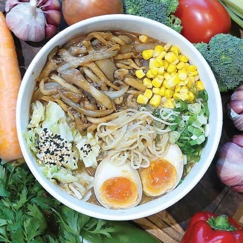 O 'Missô Lamen (Vegano)' do nosso Menu Vegano é um espetáculo culinário de cores e sabores. O caldo, preparado com a tradicional receita da família Chau e a base de missô, é embalado separadamente dos demais ingredientes para preservar a textura e frescor. O macarrão japonês, feito especialmente para veganos, é acompanhado de um repolho refogado suavemente. Acrescentamos ainda shimeji, cebolinha cortada fresca, edamame (o saboroso grão de soja verde) e milho, tudo finalizado com um toque de gerg