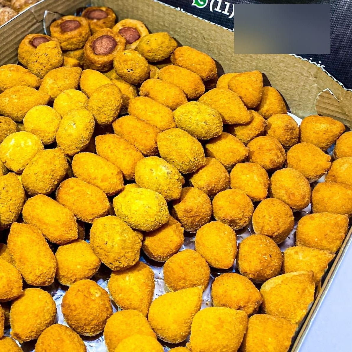 100 Deliciosos salgados de festa tamanho 20g (não é o mini) Crocantes por fora e mega recheados por dentro. Uma unidade é igual a 10un. Escolha 10 itens que equivalem a 100 un.