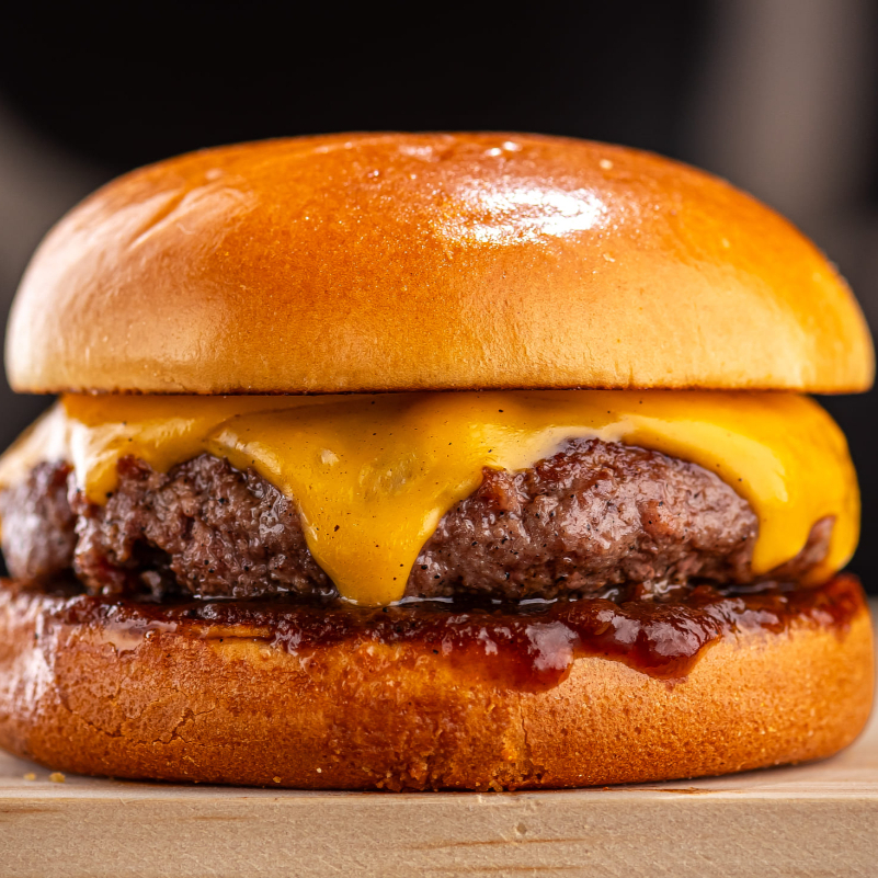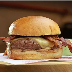Hamburguer, fatias de bacon, queijo, maionese de bacon