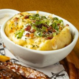 Batata recheada com nossa Star Ribs desfiada, mix de queijos e cebolinha