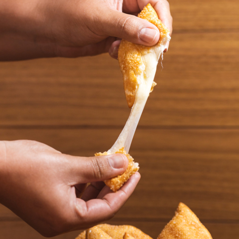 10 un de mini pastéis de Camarão com cream cheese, ou de Mix de queijos