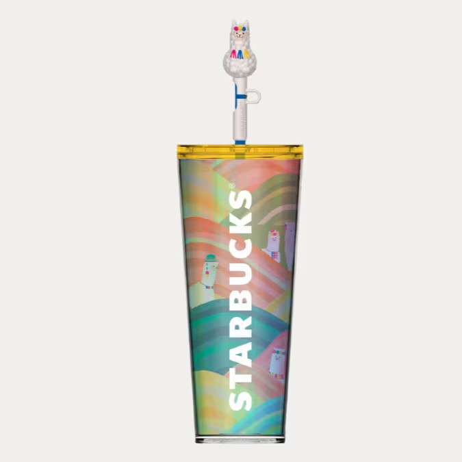 Copo de plástico, com tampa e canudo personalizado de lhama em silicone - 710 ml