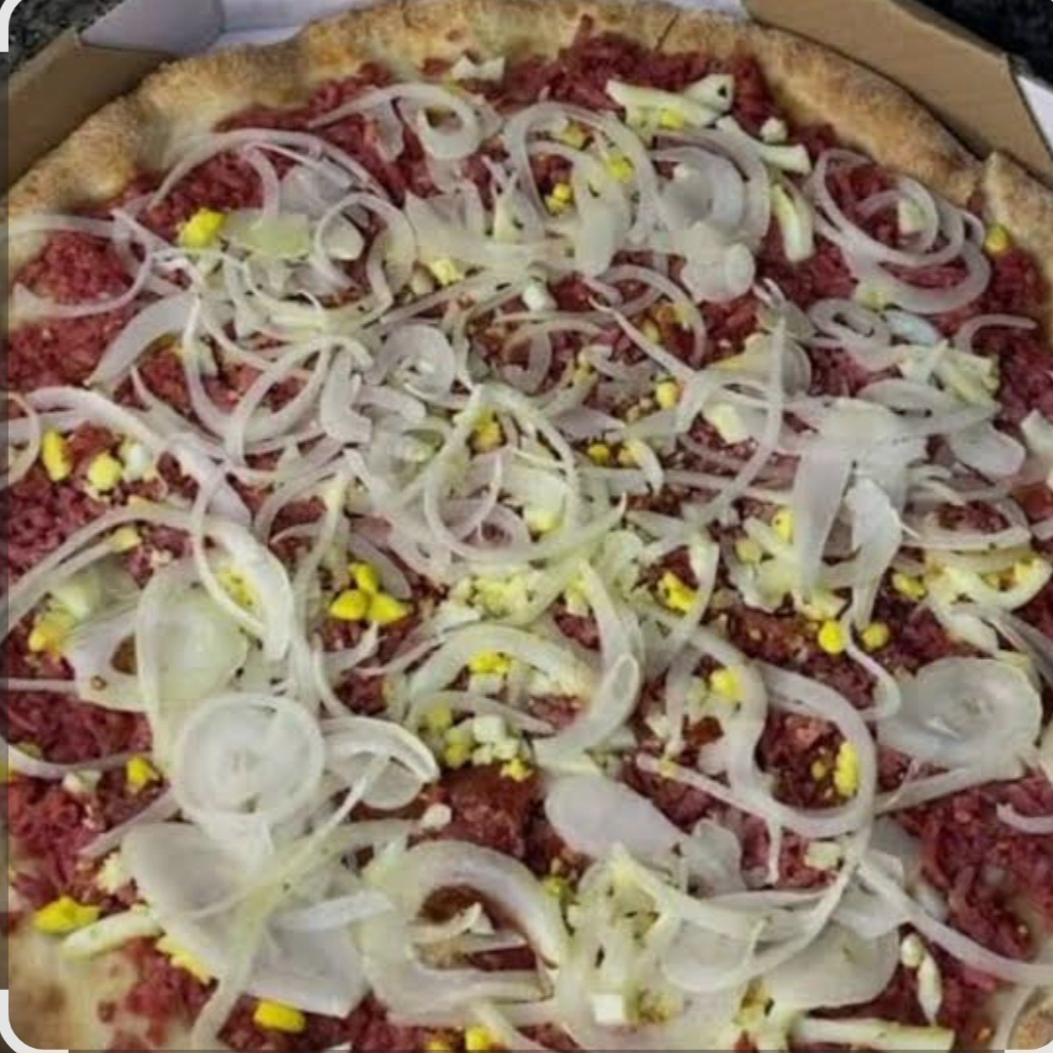 Atum, molho especial da casa, cebola, mussarela, requeijão cremoso, azeitonas e orégano