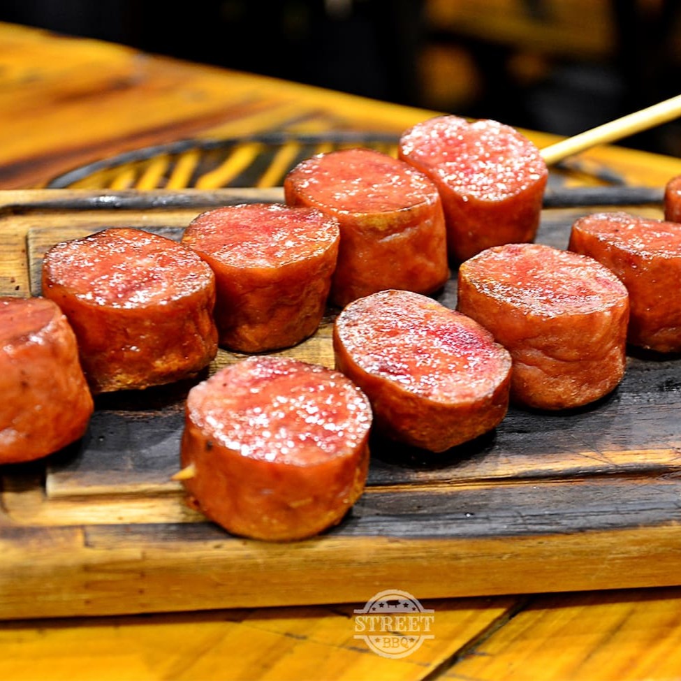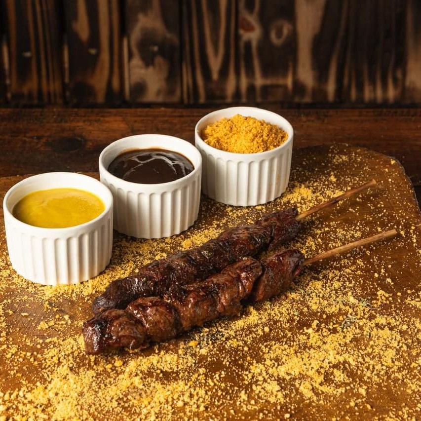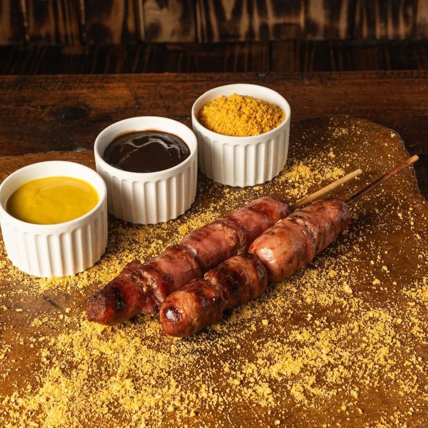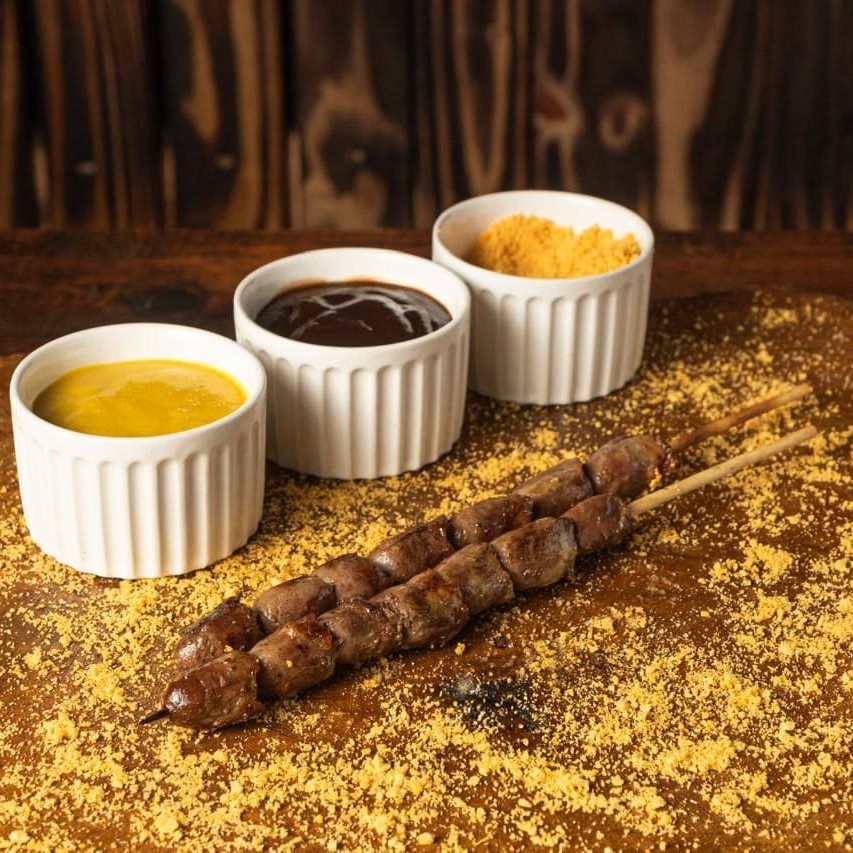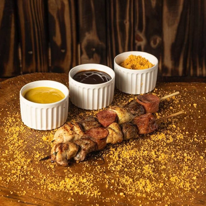 Combo perfeito: alcatra, linguiça, calabresa e peito de frango. O espeto que tem tudo!