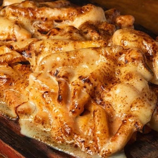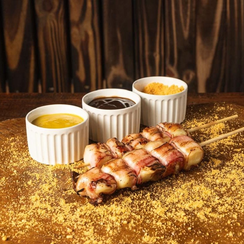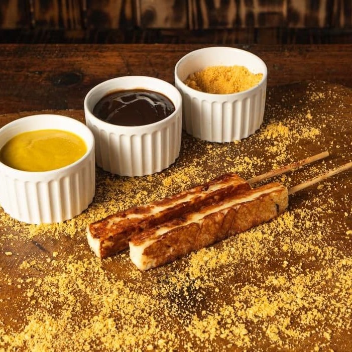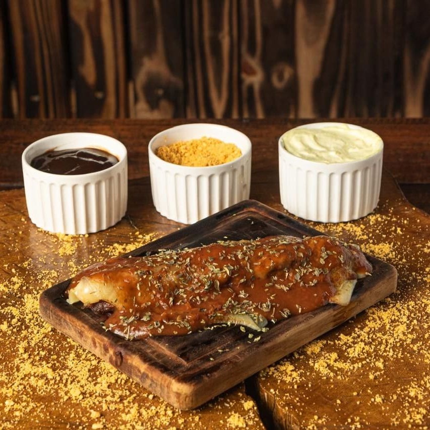 Pão de alho recheado com o espeto da sua escolha, maionese de alho da casa, finalizado com mussarela gratinada e toque de orégano. O Queridinho!! Crocante, cremoso e suculento – uma explosão de sabor em cada mordida!