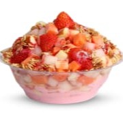 400 g de açaí, acompanhado de granola, banana, maça, mamão, morango, leite condensado, mel, cobertura de morango.