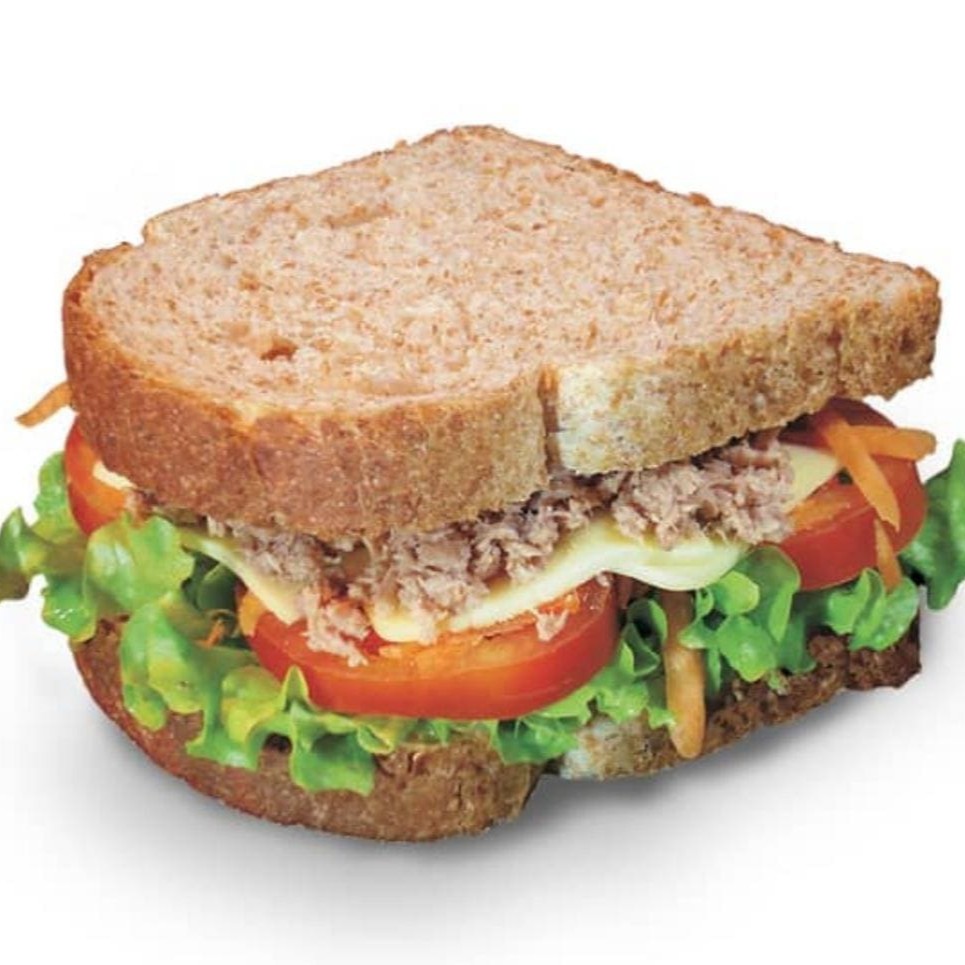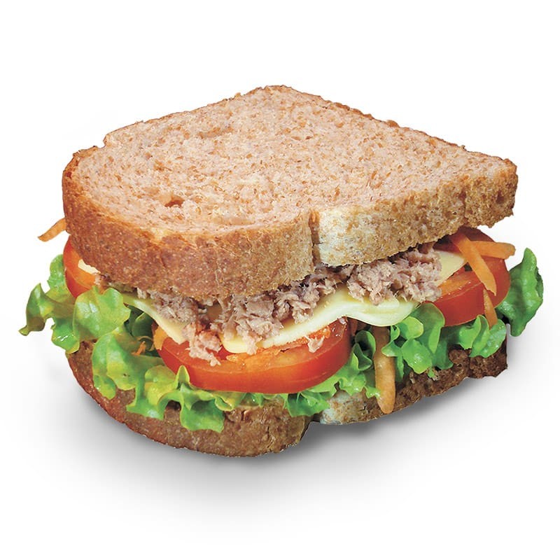 2 fatias de pão integral light, maionese light, atum, cenoura, alface, tomate e queijo mussarela