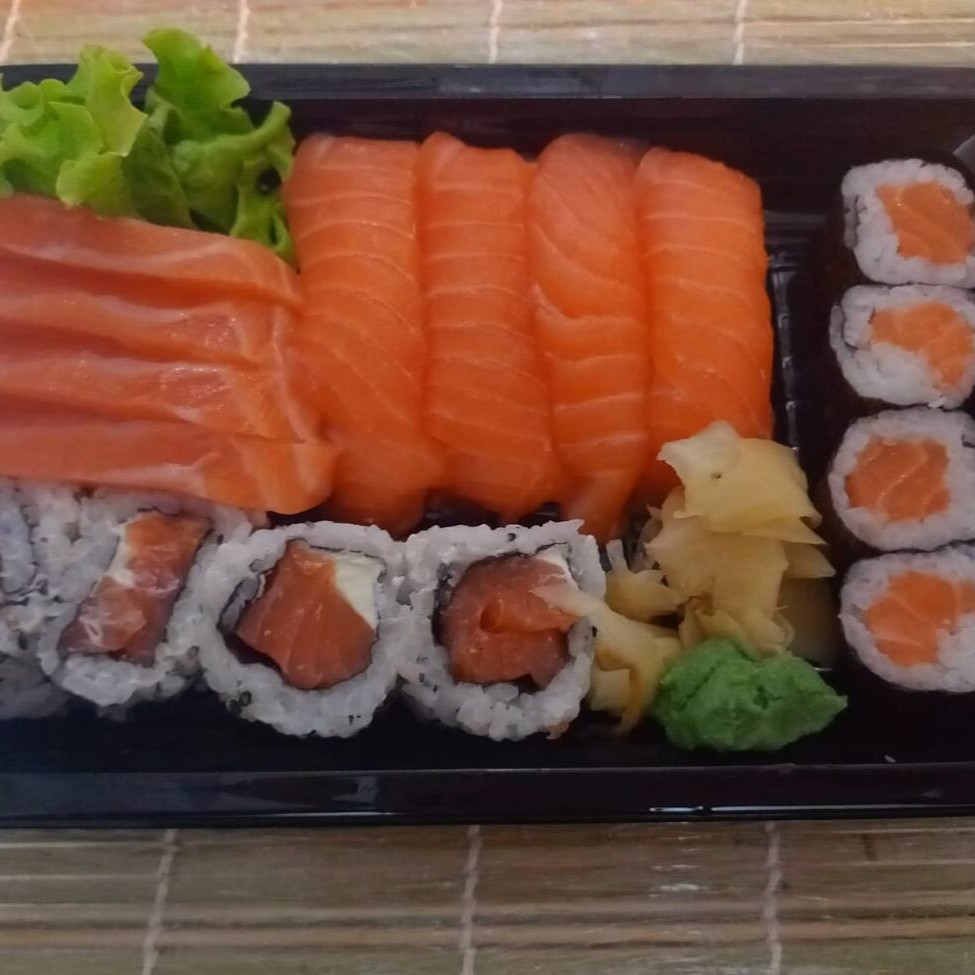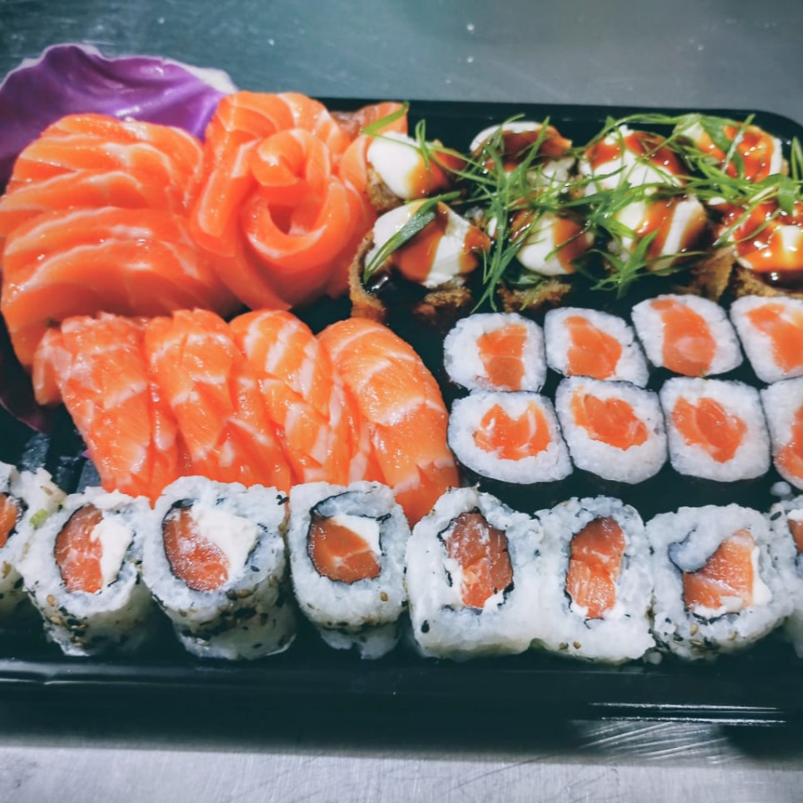• 10un de Sashimi de Salmão • 8un de Hot Rolls de Salmão • 8un de Uramaki de Salmão • 8un de Hossomaki de Salmão • 4un de Niguiri de Salmão