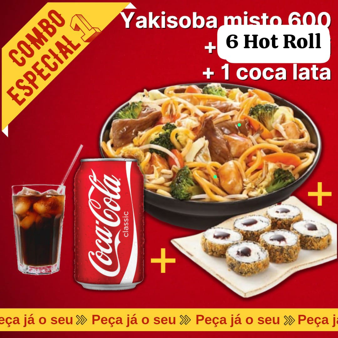 Yakisoba Frango 700gr, 6 Und Hot Salmão, E Coca 350 Ml