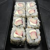 SUSHI ENROLADO DE ARROZ POR FORA COM SALMAO GRELHADO E CREAM CHEESE