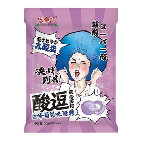 Bala Super Azeda Sabor Uva Hongtaiji 65g